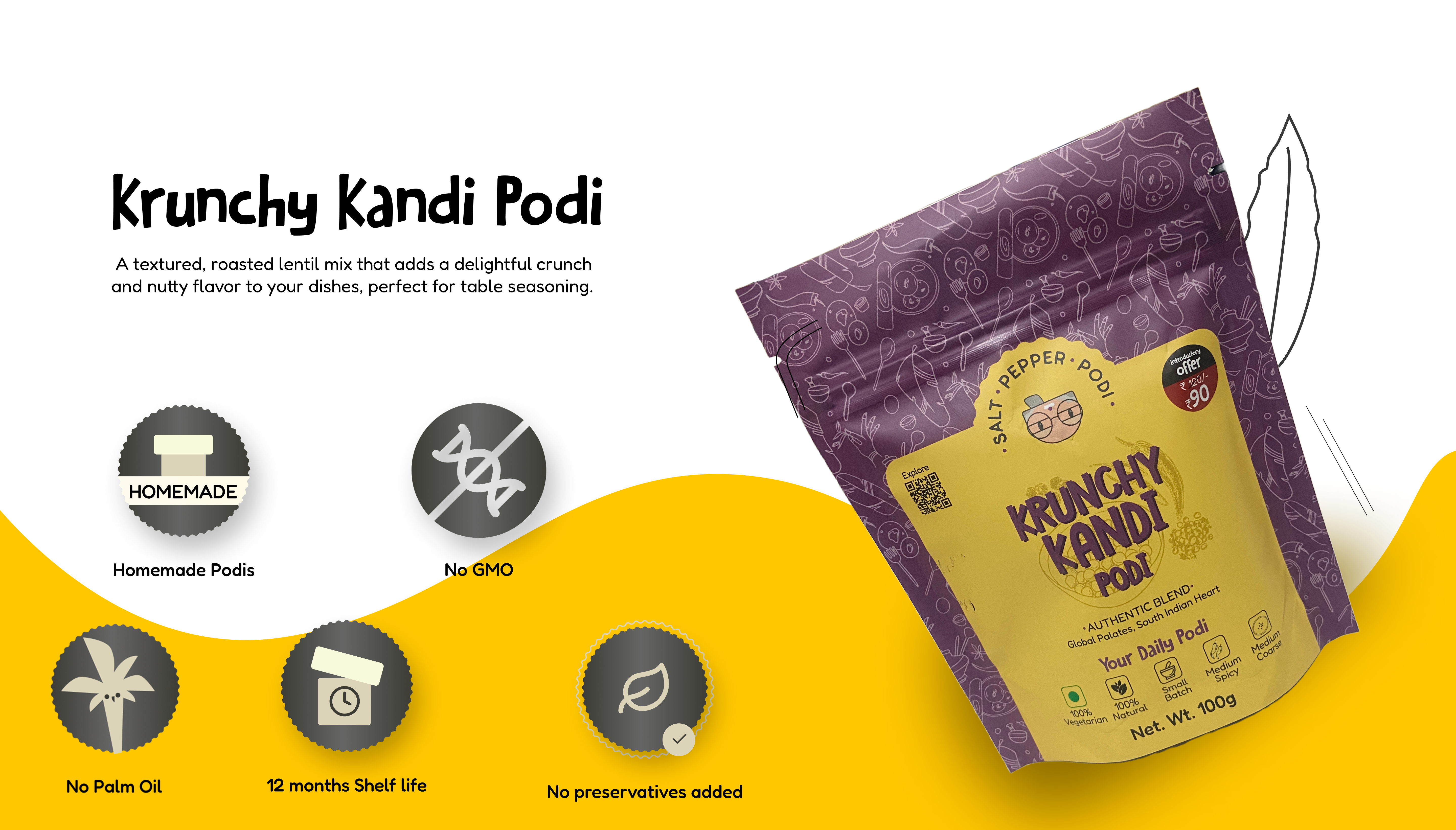 Manish Jain The Krunchy Kandi Podi adds the perfect crunch to my snacks. It’s addictive! I find myself sprinkling it on everything from rice to veggies