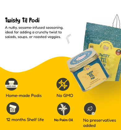 Shruti Sinha The Twisty Til Podi adds a wonderful nutty flavor to my dishes. It’s crunchy, flavorful, and adds that extra twist I didn’t know I needed!